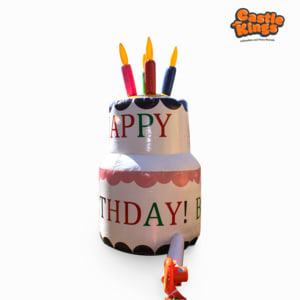 Our Birthday Inflatable Cake comes with a colourful “Happy Birthday” written message that even your far-away neighbours can read clearly. Blow those big, fruitful wishes on to its blue, green, pink, and red candles. The coated polyester material ensures durability and strength and the included blower fan, stakes and ropes will help keep it inflated and in place.