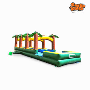 What better way to cool off and have a blast for those beautiful summer days! Our dual-lane tropical slip and slides have two lanes and can accommodate up to two people at a time. Our largest slip and slide at 32 feet long and 8 feet wide, it's sure to be the hit of your party.