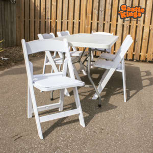 Our beautiful and sophisticated white folding chairs will surely add elegance and simplicity to your special day. Your guests will sit comfortably throughout your event with our chair's soft-padded cushion.