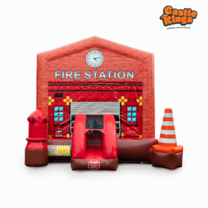 Our Firehouse Bouncy Castle will transform every kid’s dream to be a firefighter into a reality. This firehouse-theme inflatable beautifully showcases a realistic visual of an actual firehouse department with fun and impressive details.