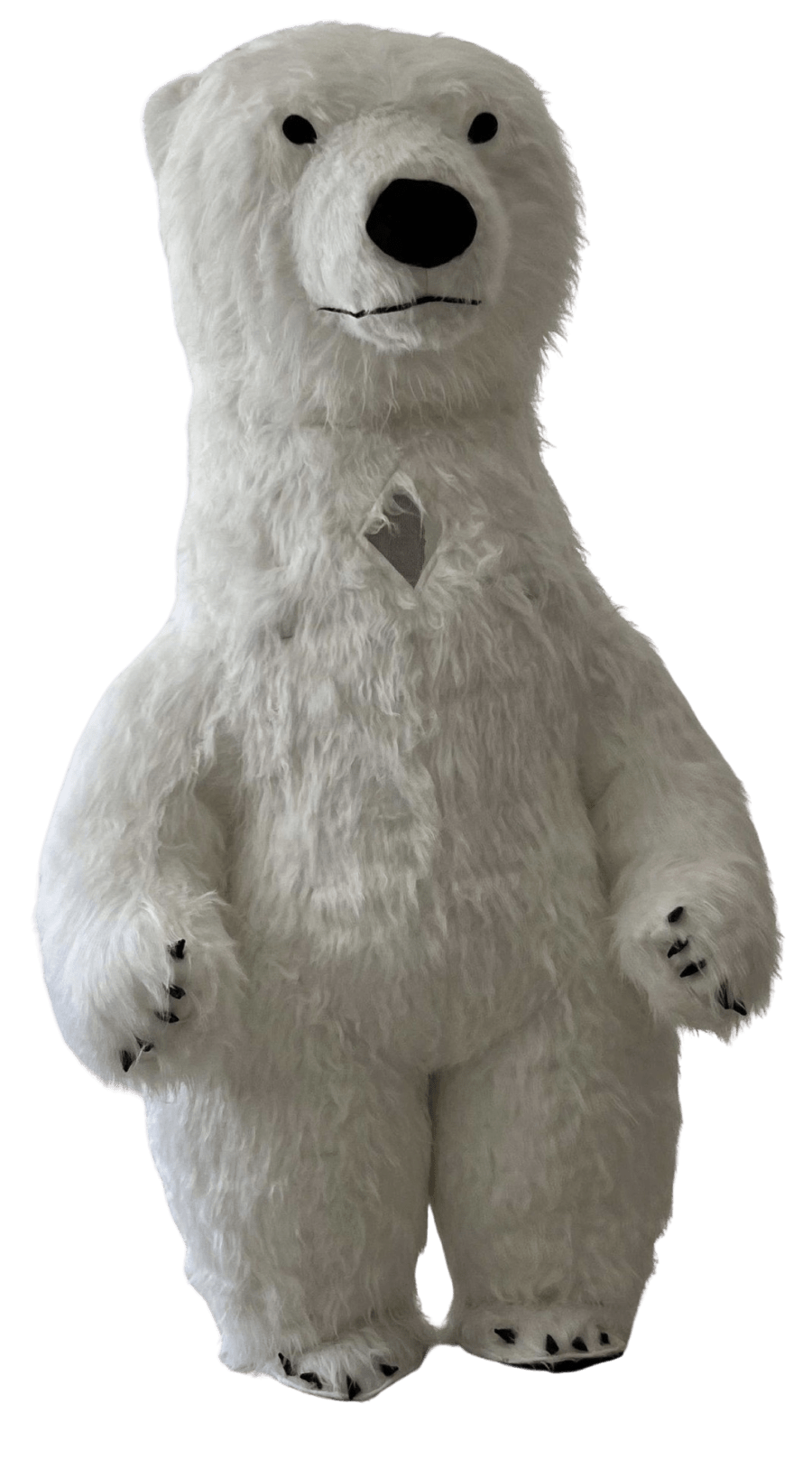 Adult size inflatable costume. Battery powered, lasts for approximately 3 hours.
