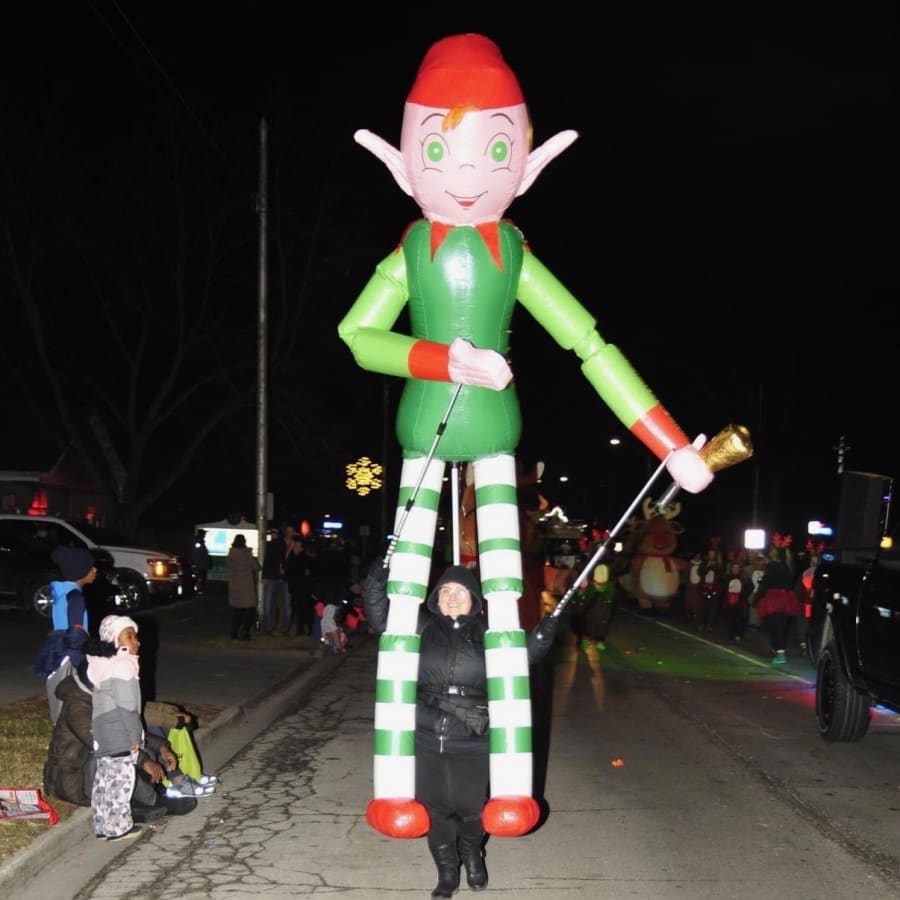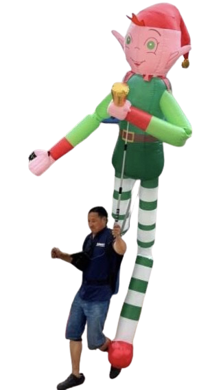 Cute interactive inflatable Christmas Elf Puppet costume. Large puppet suitable for use by adults. Puppets are battery powered and supplied with a battery that lasts for approximately 3 hours.