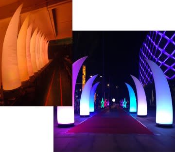 7 foot tall arch lights. They can be any colour. Colour is user controllable with a remote. Book in pairs to make archways for your next event.