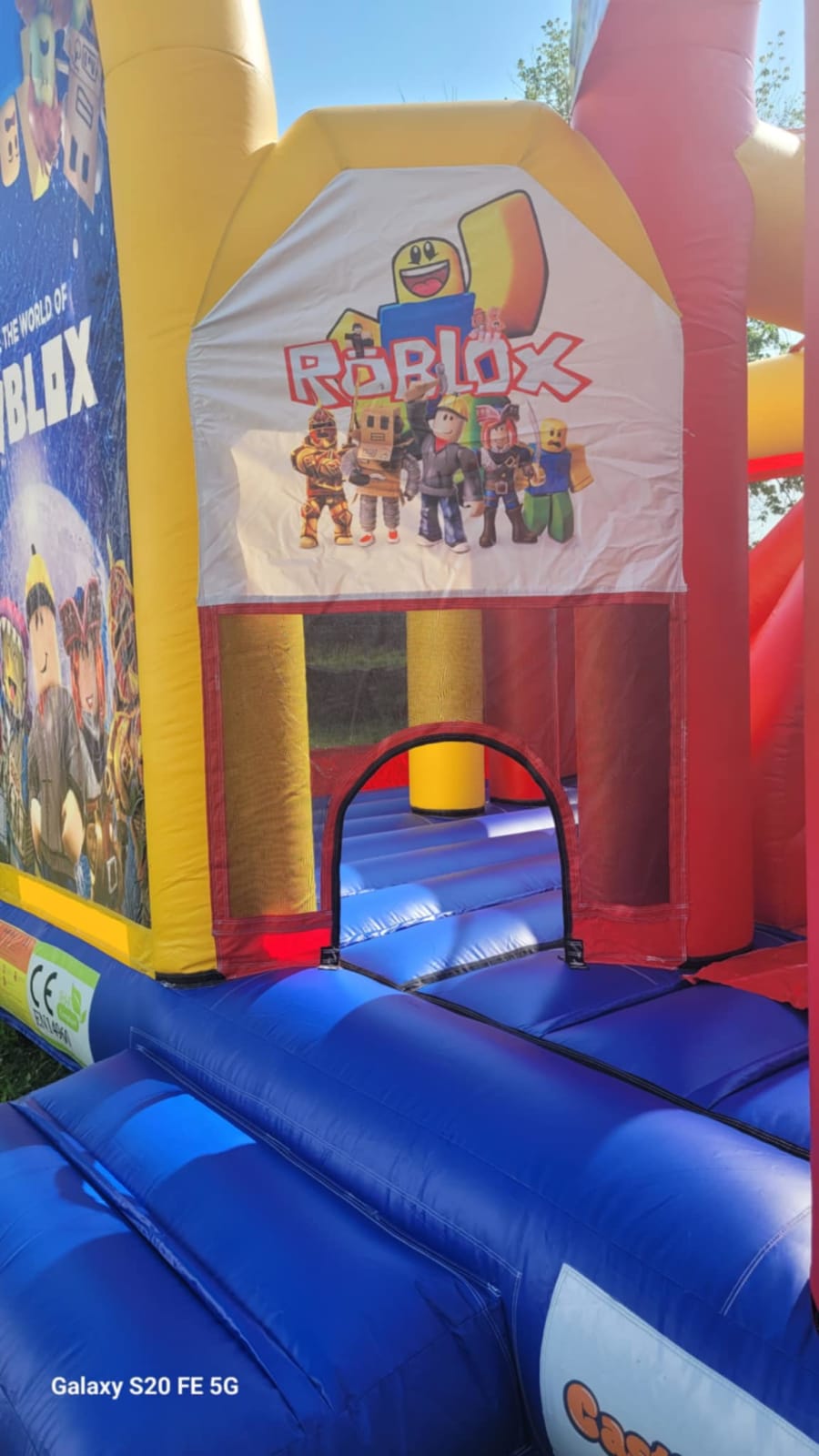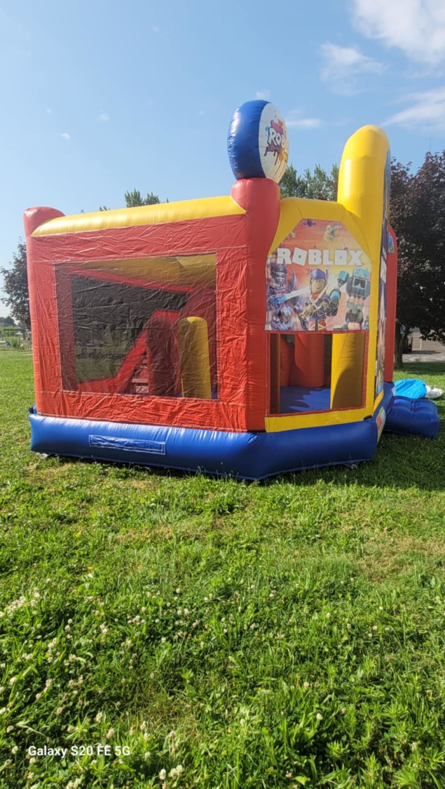 ! Perfect for birthdays, events, or any celebration, this vibrant inflatable features colorful graphics inspired by the popular Roblox universe. Kids will love bouncing, jumping, and playing in a safe, fun environment that feels just like their favorite game.