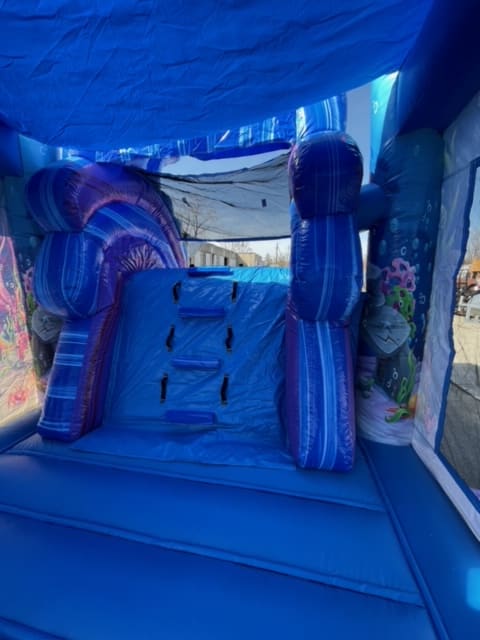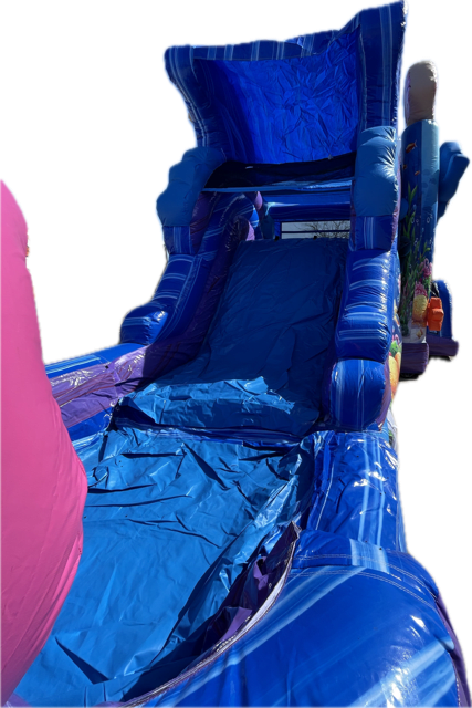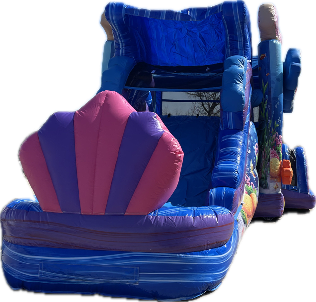 Start your undersea adventure with our Mermaid Wet or Dry Combo. Complete with a bounce area and slide that can be used wet or dry.