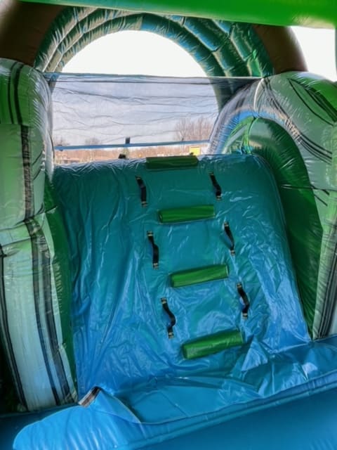 Suitable for toddlers to small adults this big farm themed combo will bring the country to your party. This combo features a 13x13 foot bounce area with a basketball net and a slide with splash pool.