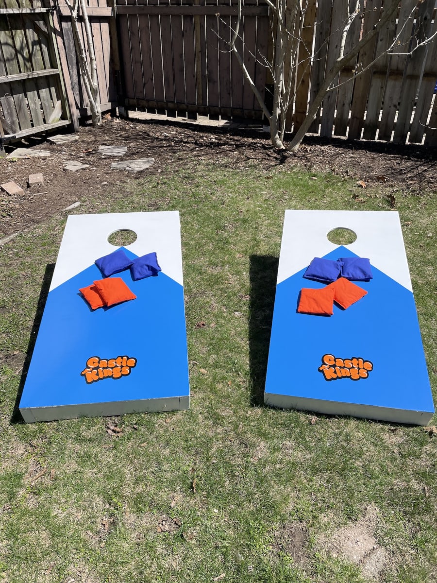 Cornhole matches are played with two sets of bags, two boards and two to four players.