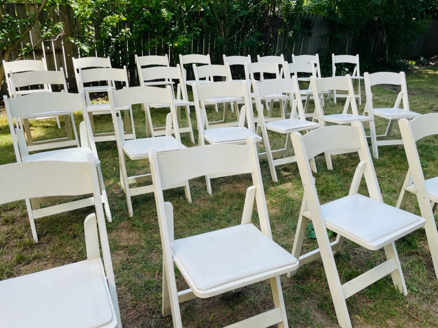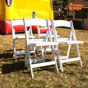 Our beautiful and sophisticated white folding chairs will surely add elegance and simplicity to your special day. Your guests will sit comfortably throughout your event with our chair's soft-padded cushion.
